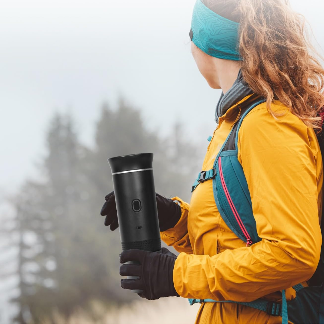 Gracias a la inteligente función de calentamiento, obtendrás el café perfecto cada vez. Compacta y fácil de limpiar, siempre lista para tu próxima aventura. Lleva tu café contigo, dondequiera que vayas.