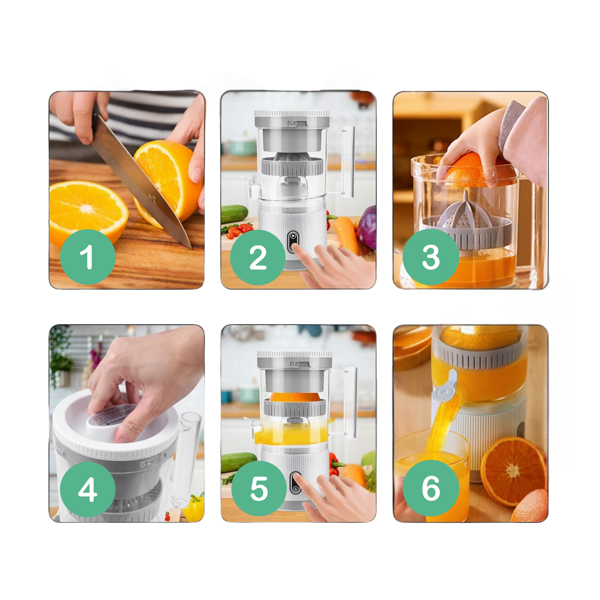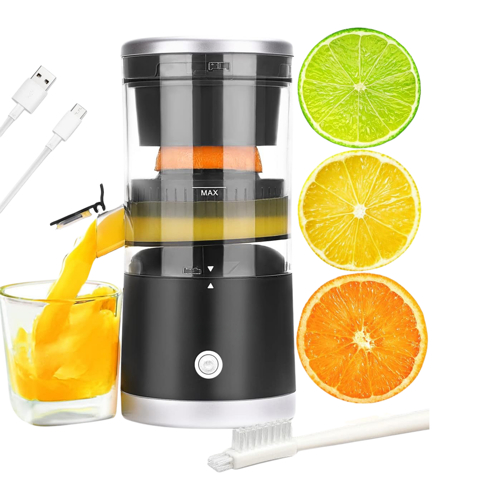 Disfruta de jugo fresco en cualquier lugar — adecuado para limones, limas, naranjas, pomelos y más.